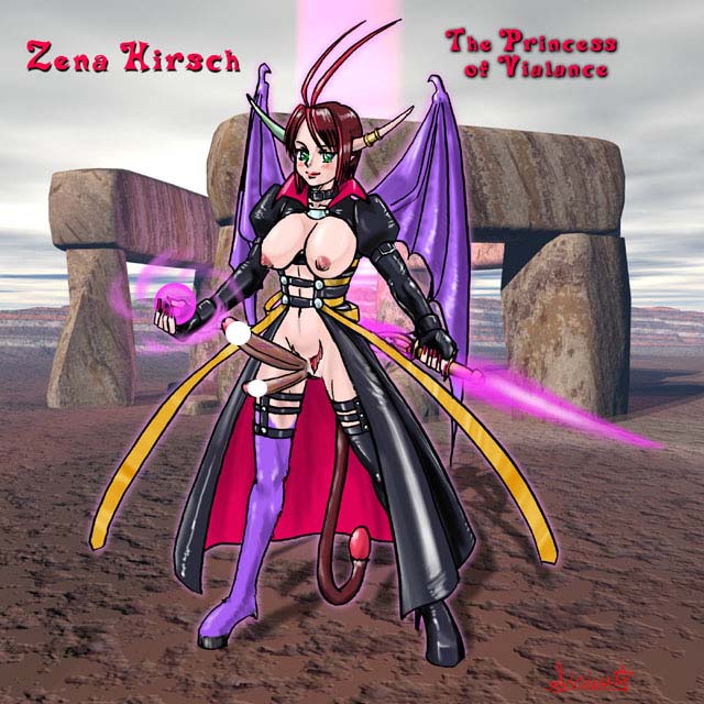 レードルのペニスをしごき、自分の秘裂をくじりながら、微笑むゼナ。