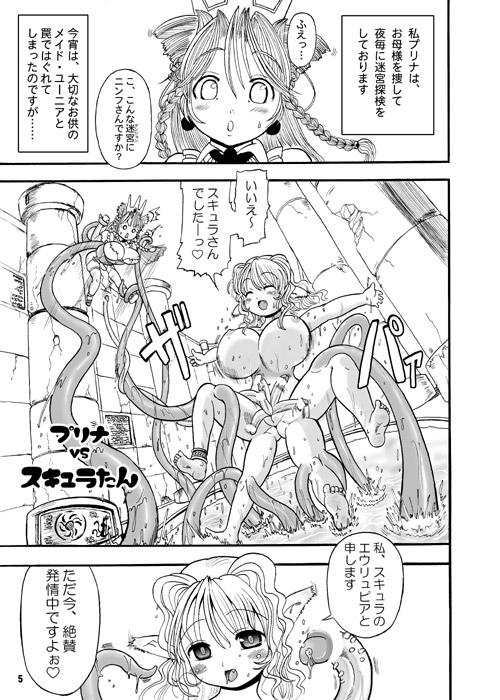 ブラックオーク娘達をはべらせ、その黒い巨尻を全て犯しつつ、プリナとプリディスを抱くプリルード。