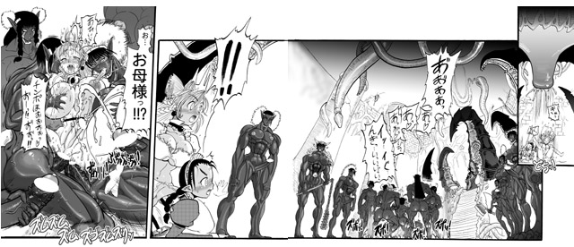 プリルードの触手ペニスが、女王の胸を喉を犯し……