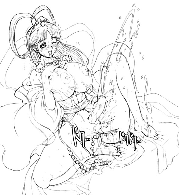 というわけで、ふたなり乙姫様を1枚練習。 世界を救い終えたフタナリヒロイン達に、全身でたっぷりとおもてなしする 乙姫様なのです。色んな意味でプロなので凄いらしいですよ!? ちなみに乙姫様が全身にぶら下げているアレはアナルビーズです(笑)