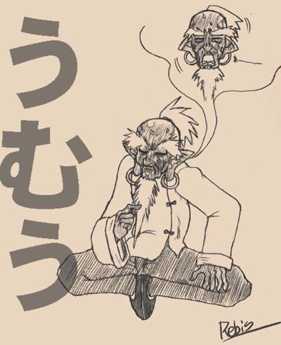 「なるほど、それで拙者の尻を触ったのでござったか。しかして老師、拙者の返した拳をわざと受けられるとは、これも何かの教えがあってのことでござろうか?」