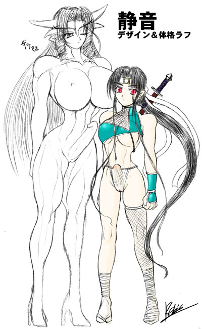 小柄で引き締まった身体つき、胸はやや小振り、抜けるように白い肌に真紅の瞳、髪の色は黒。敵の攻撃を受ける可能性が無いため、甲冑の類は身につけず、非常に軽装である。武器は直刀(忍者刀)それ自体が各種毒物、媚薬の精製能力を持った金属生命体であり、必要に応じてその形態を変える。一日に一度、持ち主の体液を吸収させる事で、自在に操ることが可能である。